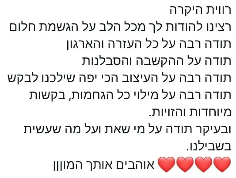 מגשימת חלומות, מעצבת אירועי בוטיק בארץ ובעולם כבר למעלה מ 5 שנים.