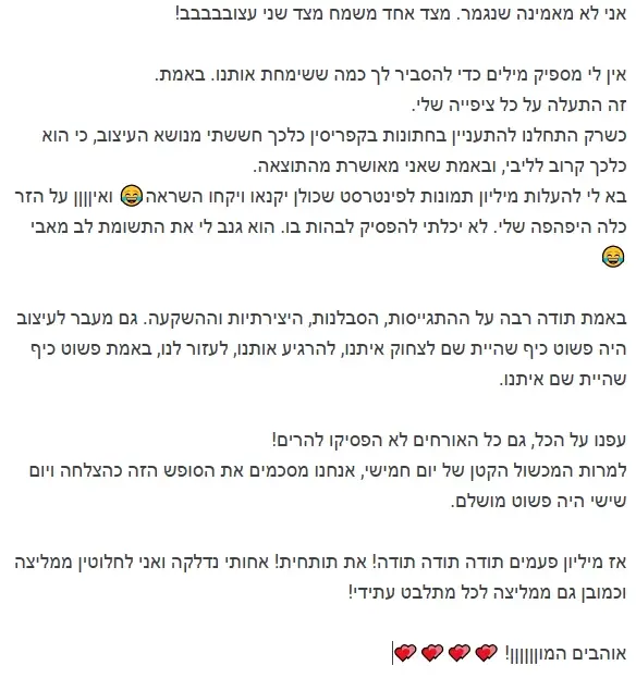 רוצים להתחיל את המסע ביחד איתי? בואו נדבר.